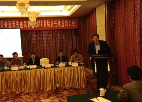 總經(jīng)理錢立華宣讀了2014年天奇藍(lán)天任職通知,并與各部門簽定了2014年的目標(biāo)責(zé)任狀。